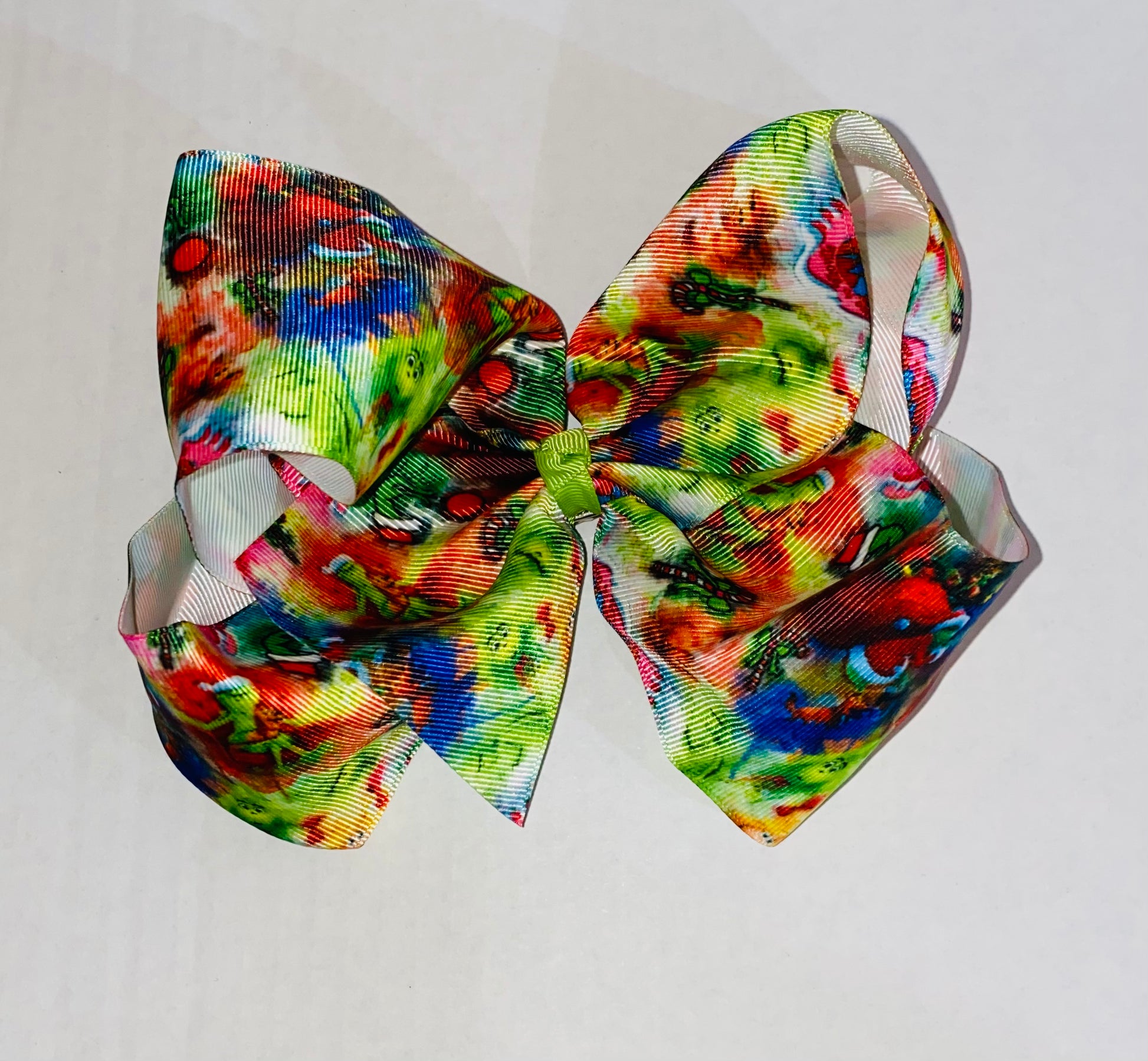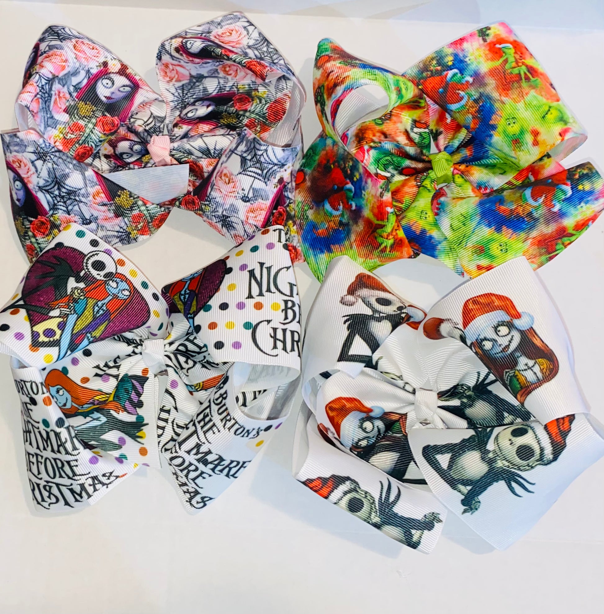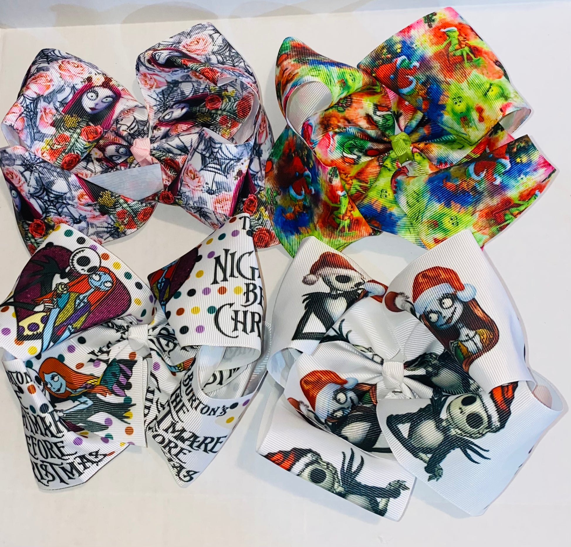 Bows are 8”, made with 3” sublimated grosgrain ribbon and attached to an alligator clip