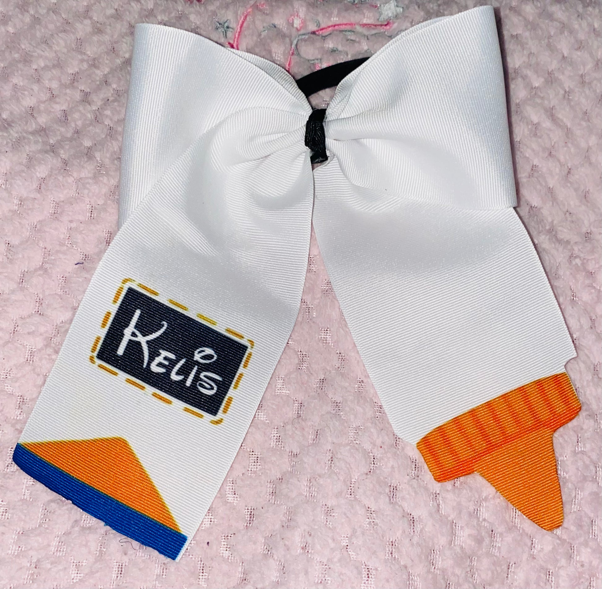 Bows are 3” and made of grosgrain ribbon. Bow is custom made to order. Available with the preference of alligator clip or snag free elastic wrapper.